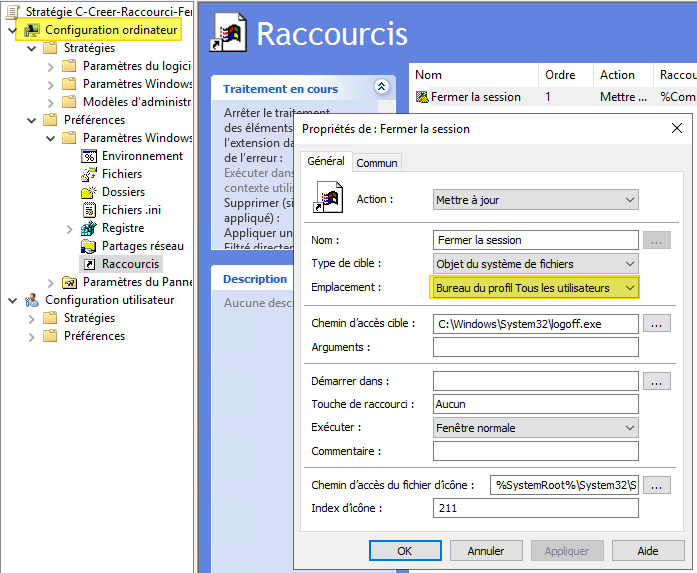Saisir un commentaire pour informer les autres utilisateurs du pc de la nature du raccourci.